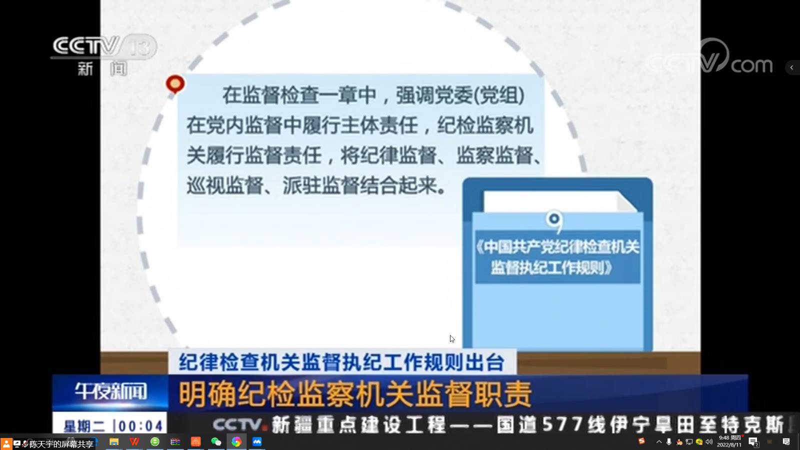 信息与网络管理中心于2022年8月11日上午开展党风廉政教育之监督执纪专题学习会,会议以线上方式进行,中心全体教职工参会,主任马小雨主持会议。