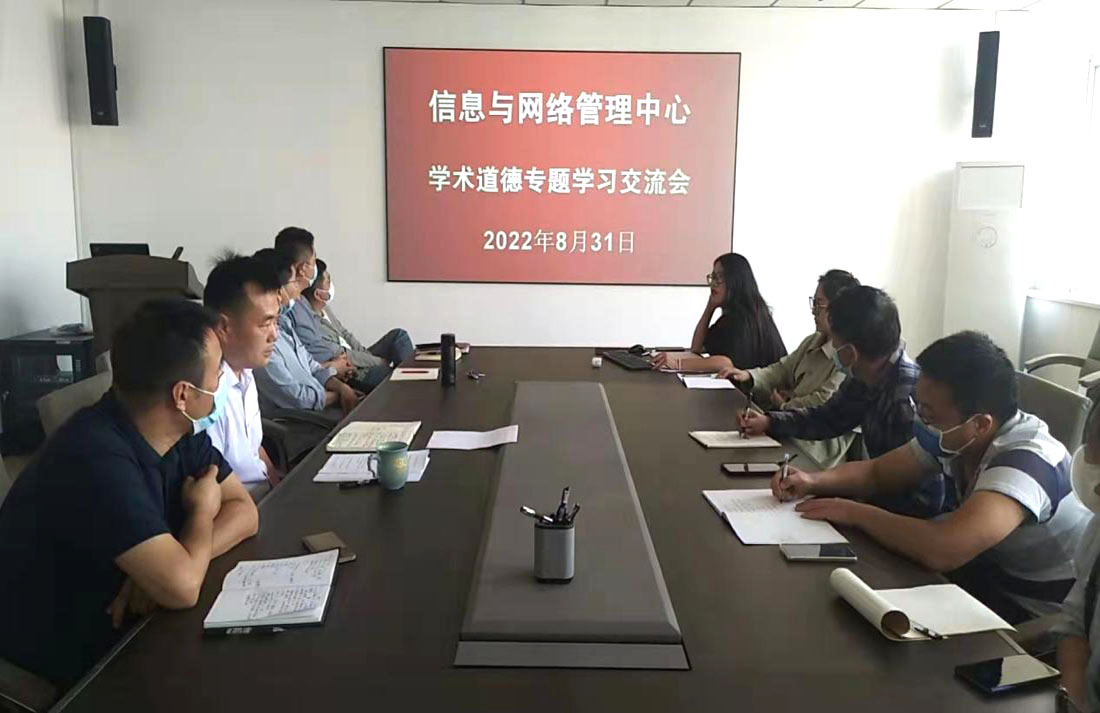 为增强中心教职工学术道德意识,规范学术科研活动,2022年8月31日上午,信息与网络管理中心于西校区八楼会议室召开学术道德专题学习交流会。会议由中心主任马小雨主持,中心全体教职工参加。