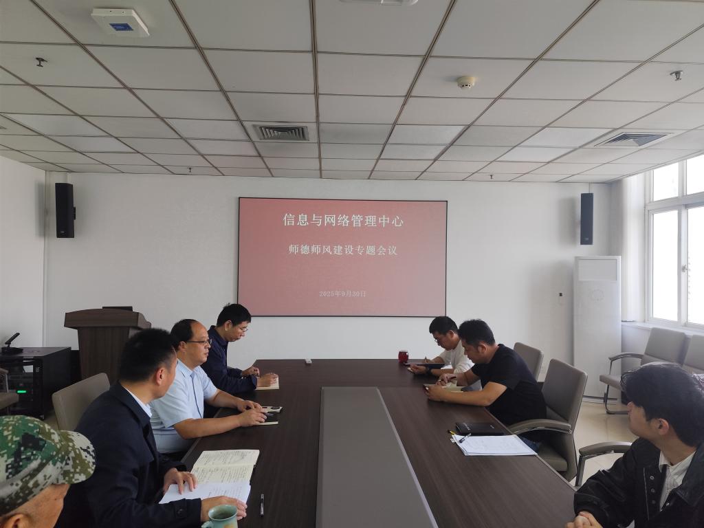9月30日上午,信息与网络管理中心在西校区图书馆八楼会议室召开师德师风建设专题会议,会议由中心主任马小雨主持,全体教职工参加。