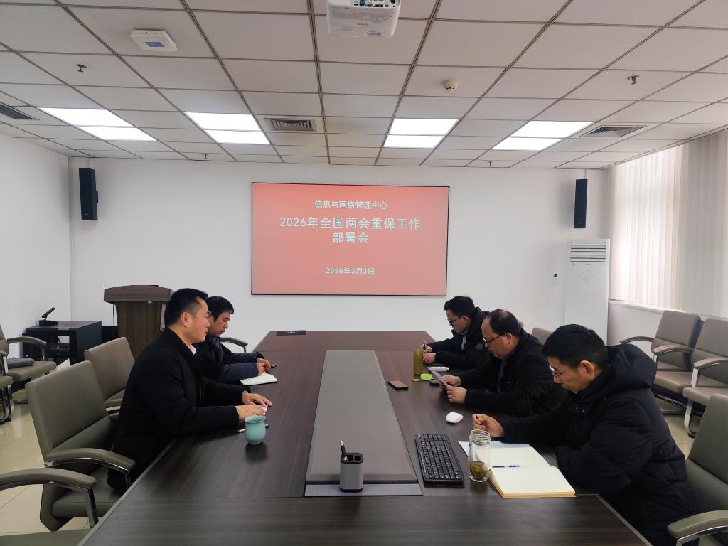 2026年3月3日下午,信息与网络管理中心在龙湖校区西区图书馆八楼会议室召开2026年全国两会重保工作部署会,会议由中心主任马小雨主持,中心各科室负责人参会。