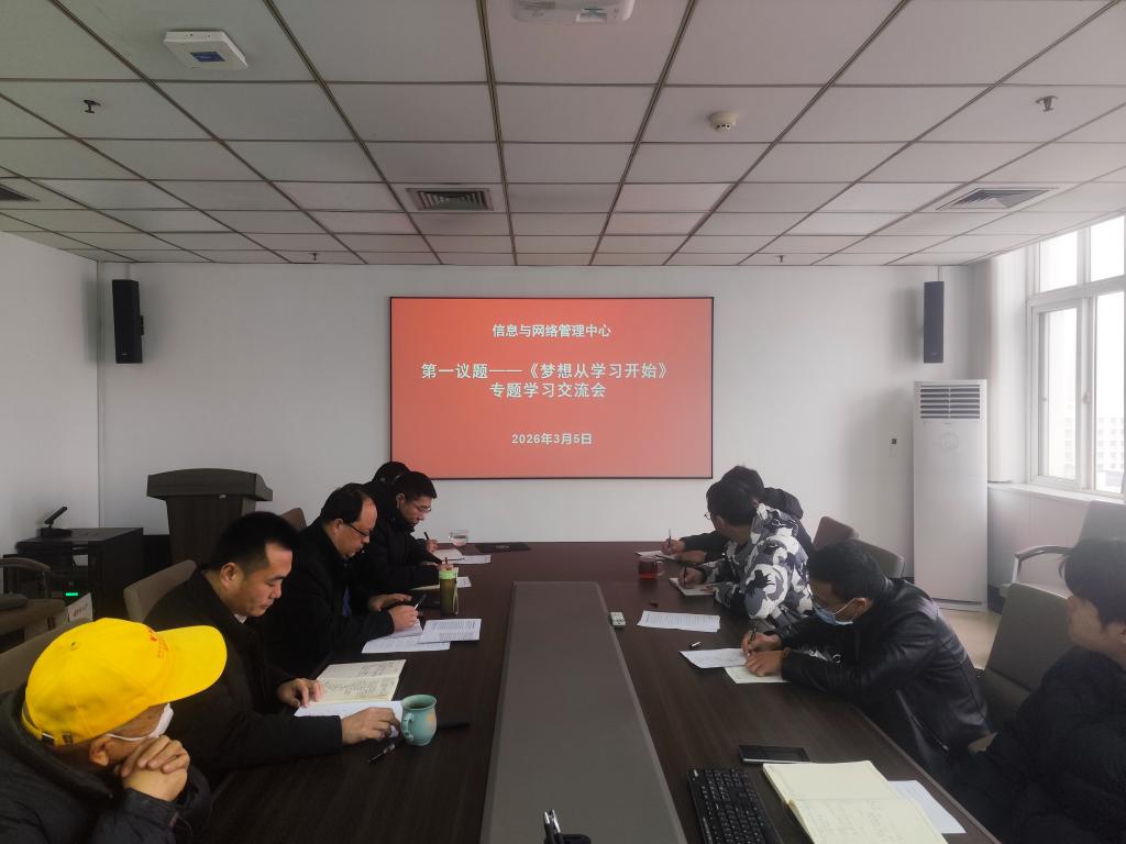2026年3月5日上午,信息与网络管理中心党支部在图书馆八楼会议室开展“梦想从学习开始”专题学习交流主题党日活动,本次活动由中心党支部书记马小雨主持,中心全体教职工参加。